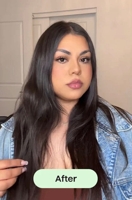 • Después: un look liso, brillante y elegante, sin esfuerzo ni cables.